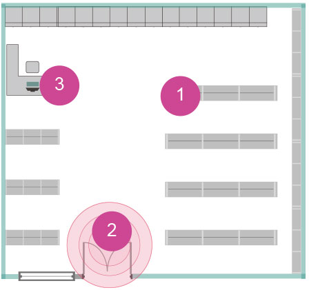 Edge Function works in a similar way to regular floor-mounted EAS antennas, but it just requires a tiny cubed Hub to be installed above or near the store exit. The system is simple to install, takes up no space at all, and can be up and running in minutes.